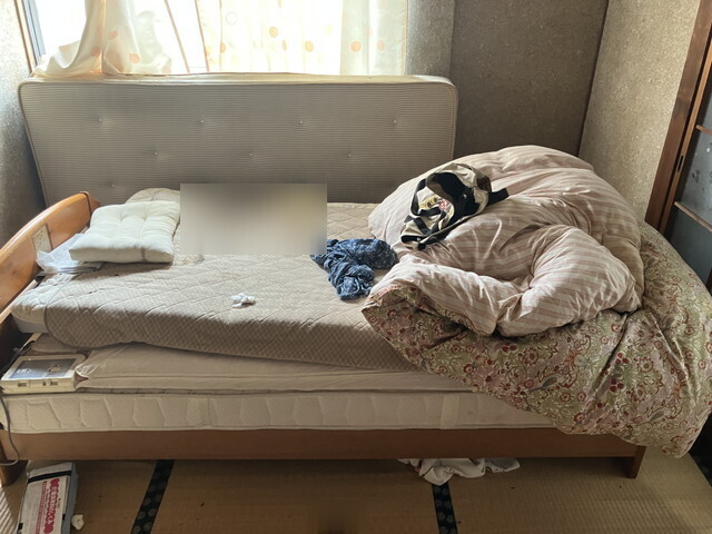ベッド上で亡くなったようで、体液の跡が見られました。