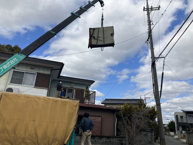 ピアノにつきましては提携先のピアノ業者に依頼し2階のベランダからつり上げし搬出を行いました。