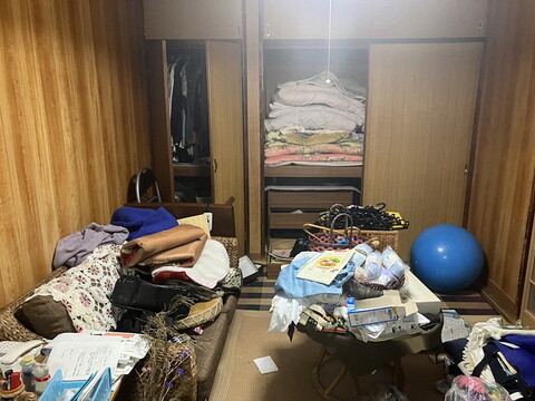 一戸建ての間取りは4LDKで大型家具や大型家電、日用品なども多く残されておりました。