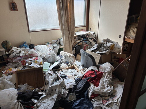 お部屋の中は衣類や弁当ガラのゴミ、家電や古紙などであふれかえっていました。