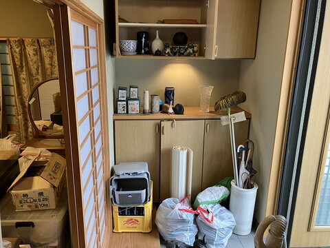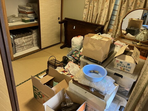 和室の中は段ボールや物が広がっていました。