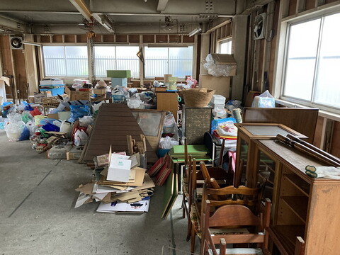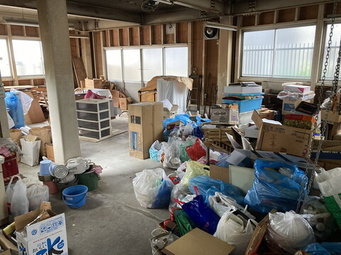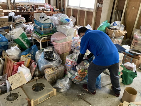 生前整理を始める前にスタッフでご依頼者様のご要望など共有し、まず一階の仕事作業場を可燃ゴミ、不燃ごみ、リサイクル品などの仕分けを行いました。