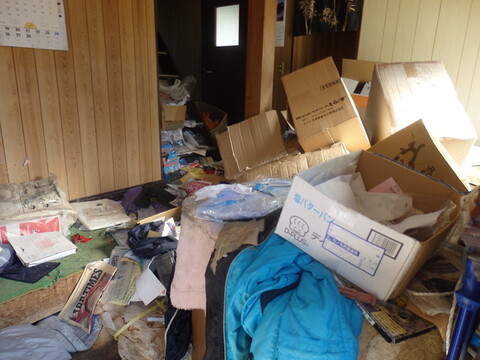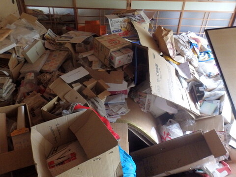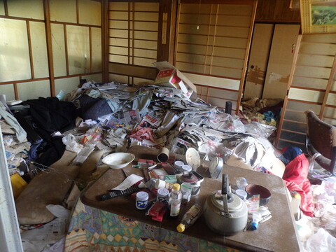 天井近くまで物が積み上がった部屋や足の踏み場もない部屋、床の抜けた部屋など様々です。