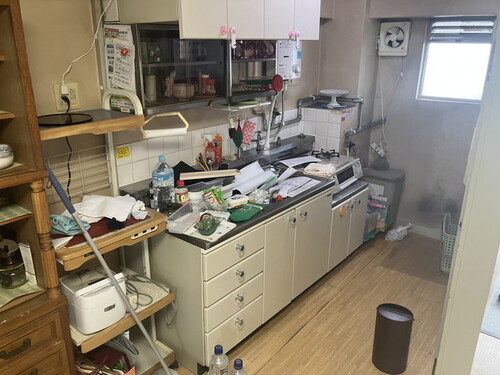 キッチンはあまり整理をさせておらず洗われていない食器や弁当ガラなどで山積みになっておりました。