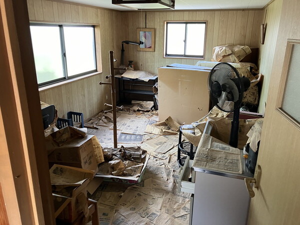 「結構物も多くて、2階なんかはゴミ屋敷のような状態なんで申し訳ないですが、何卒よろしくお願いいたします。」