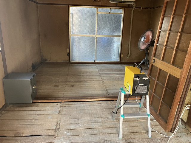 最後に、死臭などを取り除くため専用薬剤を部屋全体に噴霧し、高濃度オゾン脱臭機を活用しました。