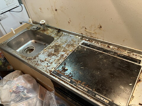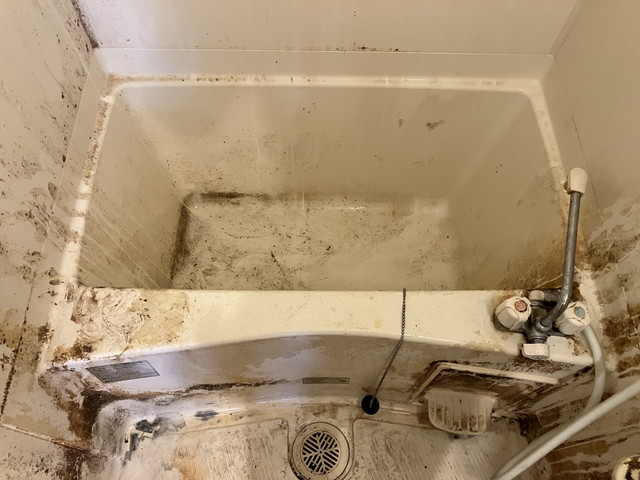 お風呂場やトイレ、キッチンにも処分品を長らく放置されていたためか、かなり汚れが目立つ状況でした。