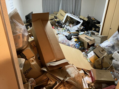 1Kほどのお部屋には足の踏み場もないほどのゴミが積みあがっています。