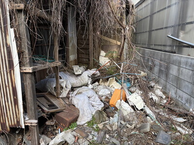 お庭周りにも布団やその他雑品を置かれている状態で、雨風に当たりかなり状態が悪くなっておりました。