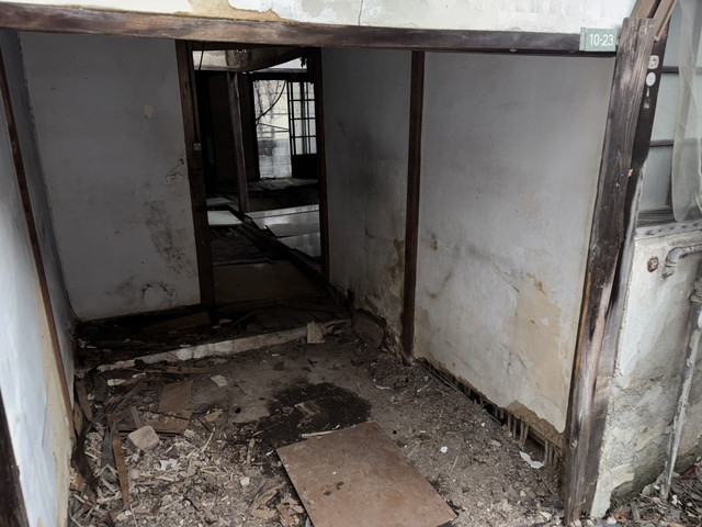 倉庫建物の入り口は物であふれ中まで入りずらい様になっており、一室の床は抜けているお部屋もありました。
