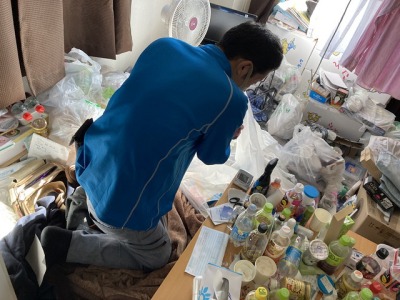 間取りは2Kで部屋全体的に荷物は散乱しており体液を専用薬剤で清掃させて頂き確認させて頂きながら梱包、搬出し水回りの清掃を終え無事に終える事が出来ました。