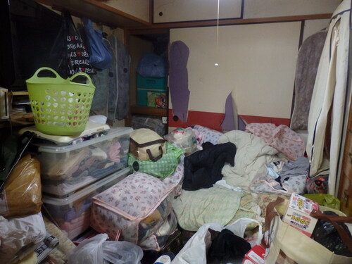 タンスやクローゼットの中身もびっしり詰まっている様子で、いろんなお品が散らばっておりました。