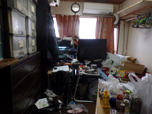 今回のお部屋では直前まで住人の方が住まわれていたこともあり、かなり生活感の残っていた状態でした。