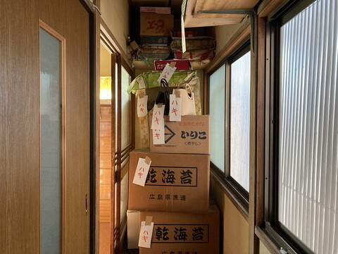 事前に整理され、処分品のうち自分たちで運べるものは離れへ入れてあり、入りきらない処分品には張り紙をしてくださっていました。