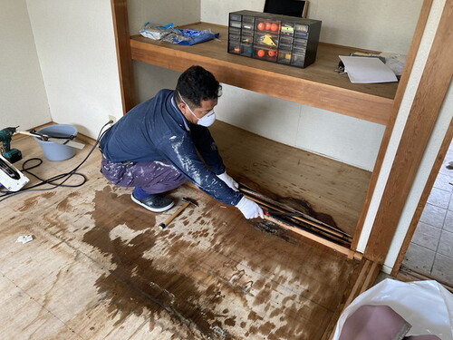 今回の現場ではお布団や畳、床の木材の部分などから作業します。