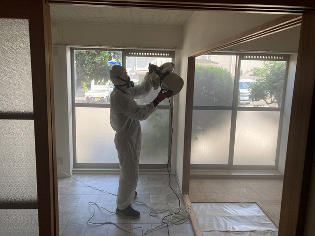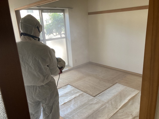 全てのお部屋から物がなくなると最後に弊社の専用薬剤で徹底的に清掃を行っていきます。