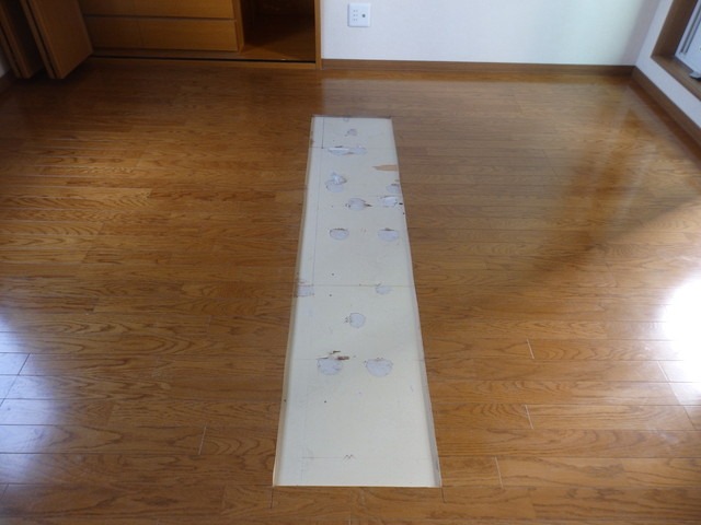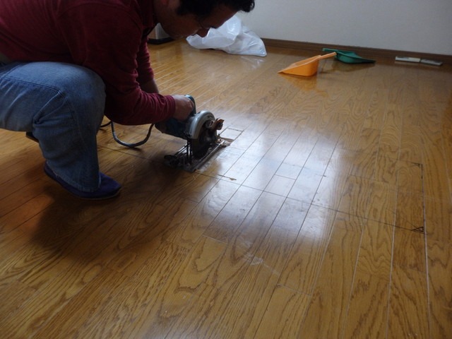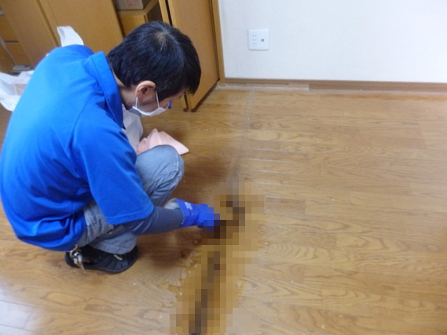 カーペットの下のフローリングにも体液が染みておりましたので、フローリングの汚染された箇所を撤去することとなりました。