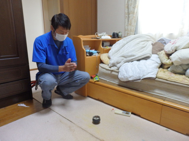 2LDKの一軒家の中に案内して頂き、実際にお亡くなりになった場所に入ると、そこは寝室のようでした。