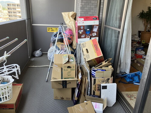 ベランダでは段ボールが処分できるようまとめられていましたが、積まれているだけで動かしたような形跡はありませんでした。