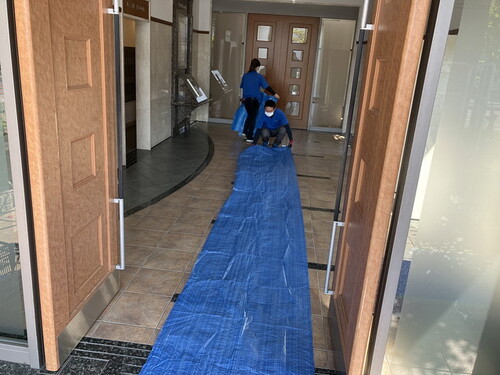 排出時にはお部屋周りはもちろん、マンションの管理人様とお話をしながら必要な部分に全て養生を行います。