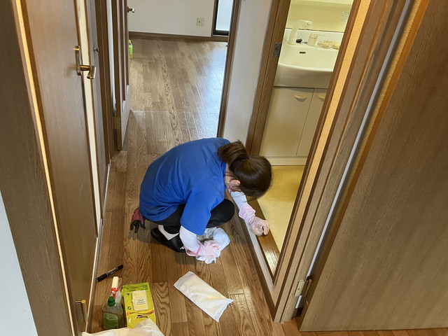 搬出後に生ごみなどの放置により害虫が発生し死骸も見つかりましたので専用薬剤を使用し駆除作業と全室の簡易清掃、クリーニングを終え終了となりました。