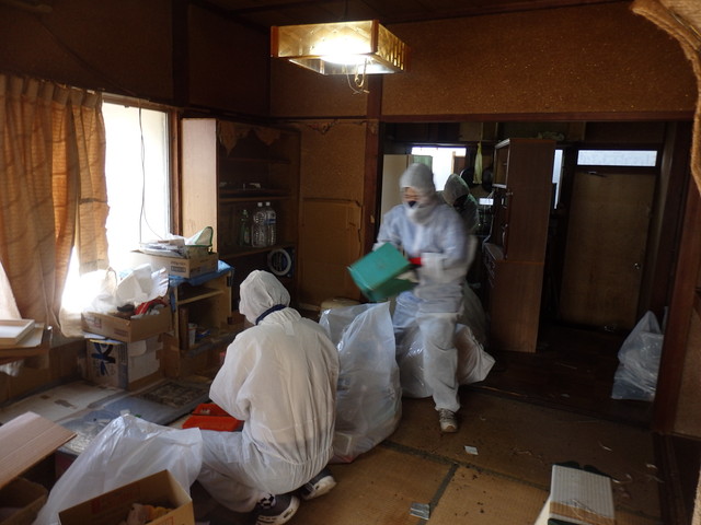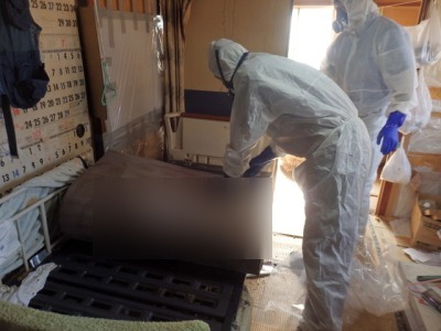 今回の作業では、防護服や防護マスクを着用し作業をさせていただきました。